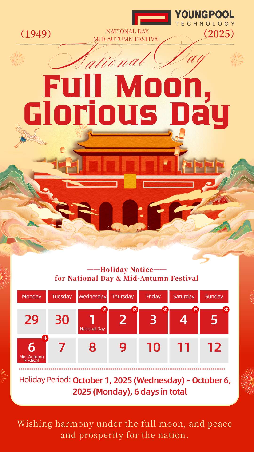 Avis de congés pour la Journée nationale de la technologie Youngpool et la Fête de la mi-automne